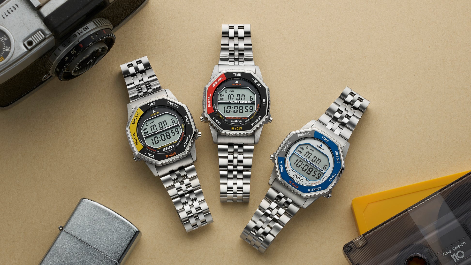Der Digitale Alarm-Chronograph von Seiko zeigt, wie spannend digitale Quarzuhren sein können. Die Seiko A829 ist zurück. Eine digitale Quarzuhr, die in den 1980er Jahren entwickelt wurde und durch ihre außergewöhnliche Funktionalität und ihr markantes Design schnell Kultstatus erreichte. Unter Sammlern ist sie auch als „Rotocall“ bekannt, ein Spitzname, der sich auf die Bedienung über die achteckige, polygonale Lünette bezieht. Statt klassischen Drückern nutzt man die beidseitig drehbare Lünette, um zwischen den Anzeigen zu wechseln. Dazu gehören Timer, eine zweite Zeitzone und eine Alarmfunktion. Auch das LCD-Display orientiert sich am Klassiker und verwendet die charakteristische Schriftart des historischen Modells. Zusätzlich bietet es praktische Erweiterungen wie eine AM/PM-Anzeige und eine Batteriestandanzeige, die den Alltag noch komfortabler machen.