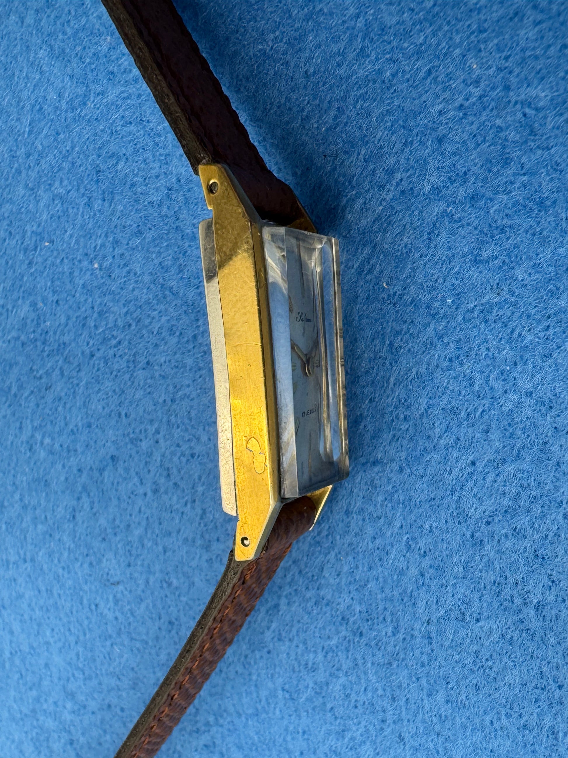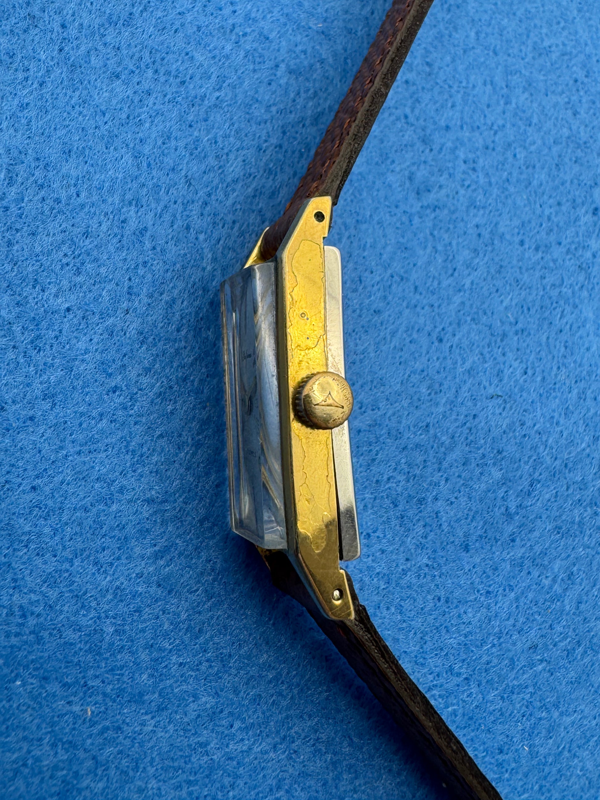 Die Uhr verkörpert den Stil und die Eleganz der frühen 1960er Jahre. Ihr rechteckiges Gehäuse mit Goldauflage zeigt feine, klare Linien und dezente Proportionen. Das silberfarbene Zifferblatt ist mit schmalen, aufgesetzten Stundenindizes und schlanken Zeigern versehen, die an den Stil europäischer Manufakturen jener Zeit erinnern. Das mechanische Handaufzugswerk mit siebzehn Lagersteinen arbeitet präzise und ruhig – typisch für Takanos Anspruch, Qualität und Handwerkskunst miteinander zu verbinden.