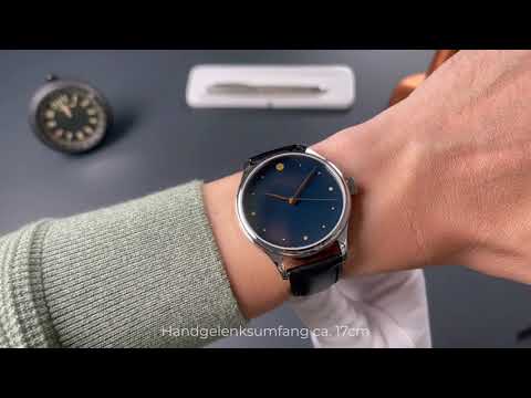 Gefertigt wird jedes Zifferblatt über Wochen hinweg in traditioneller Handarbeit. Die Reduktion auf fein gesetzte Punktindizes und goldfarbene Zeiger lenkt den Blick auf das Wesentliche: die Ruhe und Tiefe des Urushi-Lacks. In Kombination mit silbernem Edelstahlgehäuse und schwarzem Lederband entsteht eine elegante, zeitlose Dresswatch.